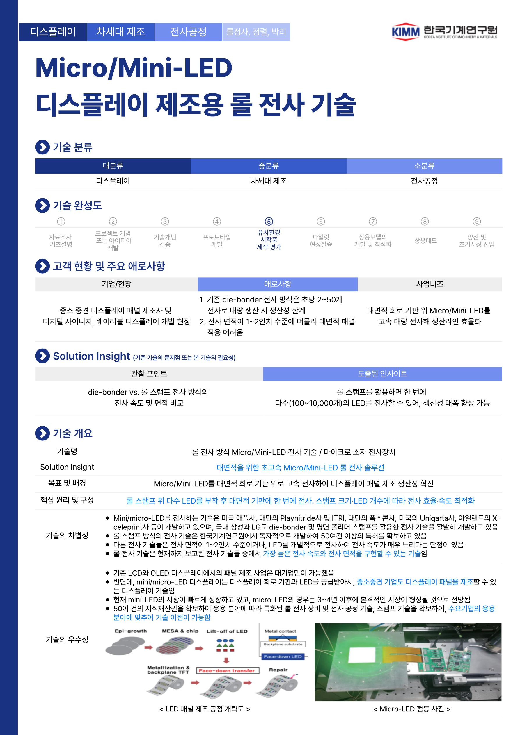한국기계연구원_김재현 박사_마이크로/미니 LED 디스플레이 제조용 롤 전사 기술