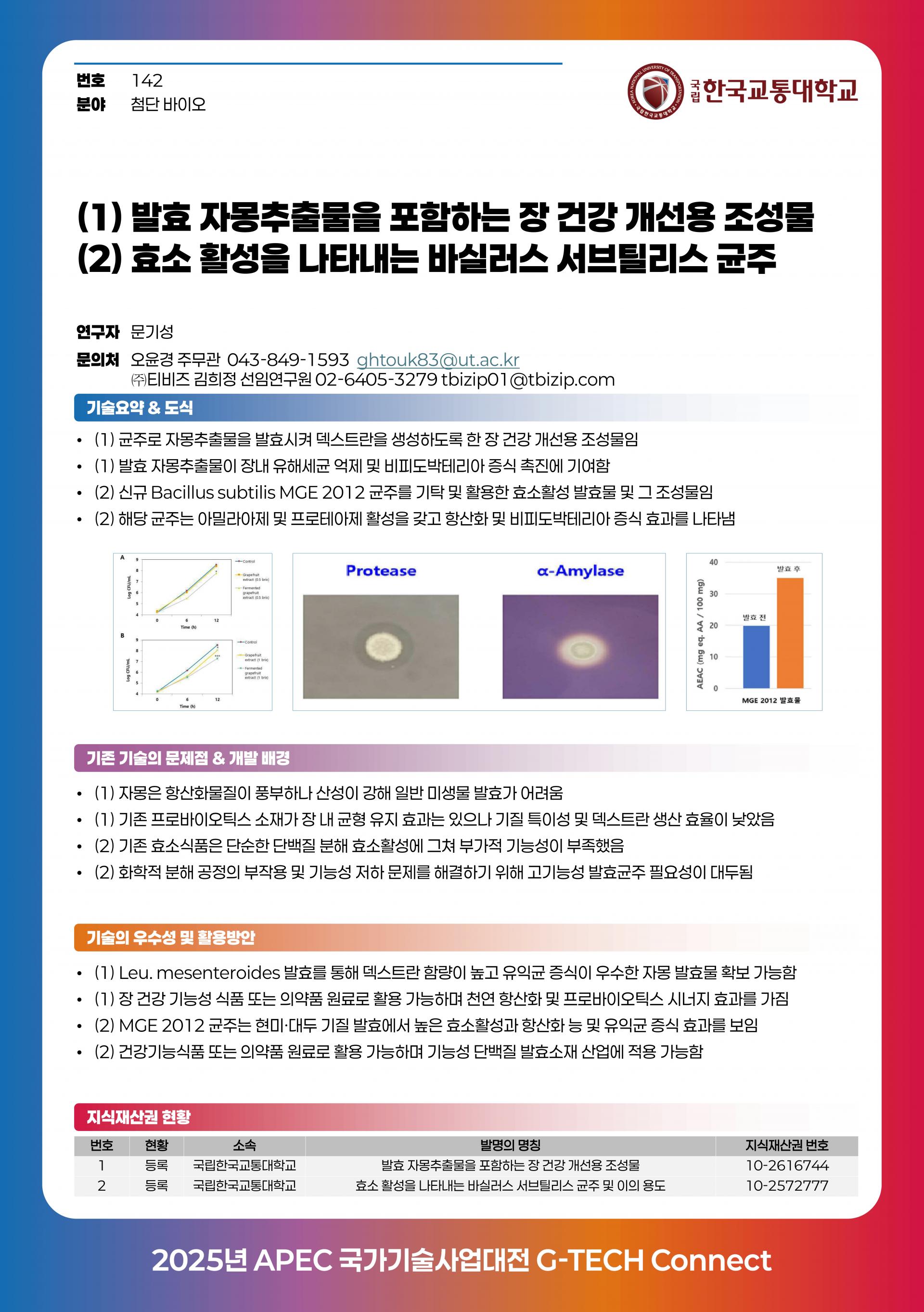 국립한국교통대학교_문기성 교수_발효 자몽 추출물 / 바실러스 서브틸리스 균주를 활용한 장건강 개선용 조성물