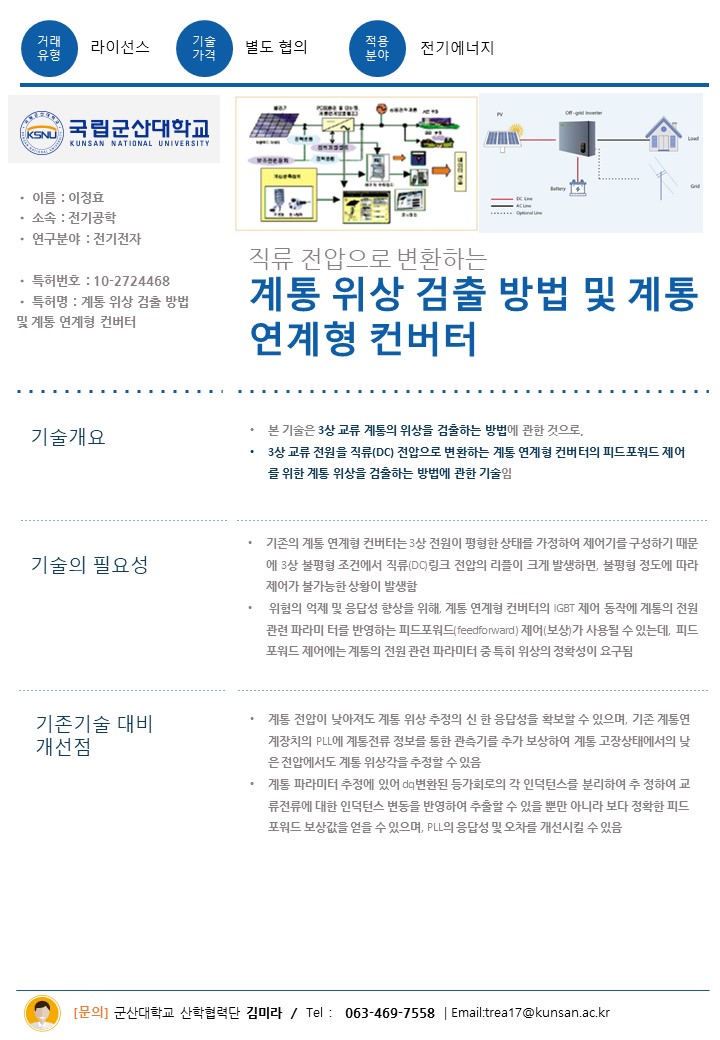 계통 위상 검출 방법 및 계통 연계형 컨버터(군산대학교 이정효 교수)