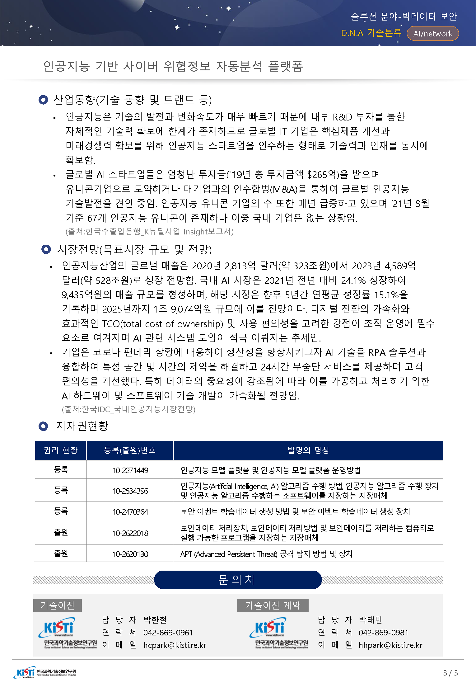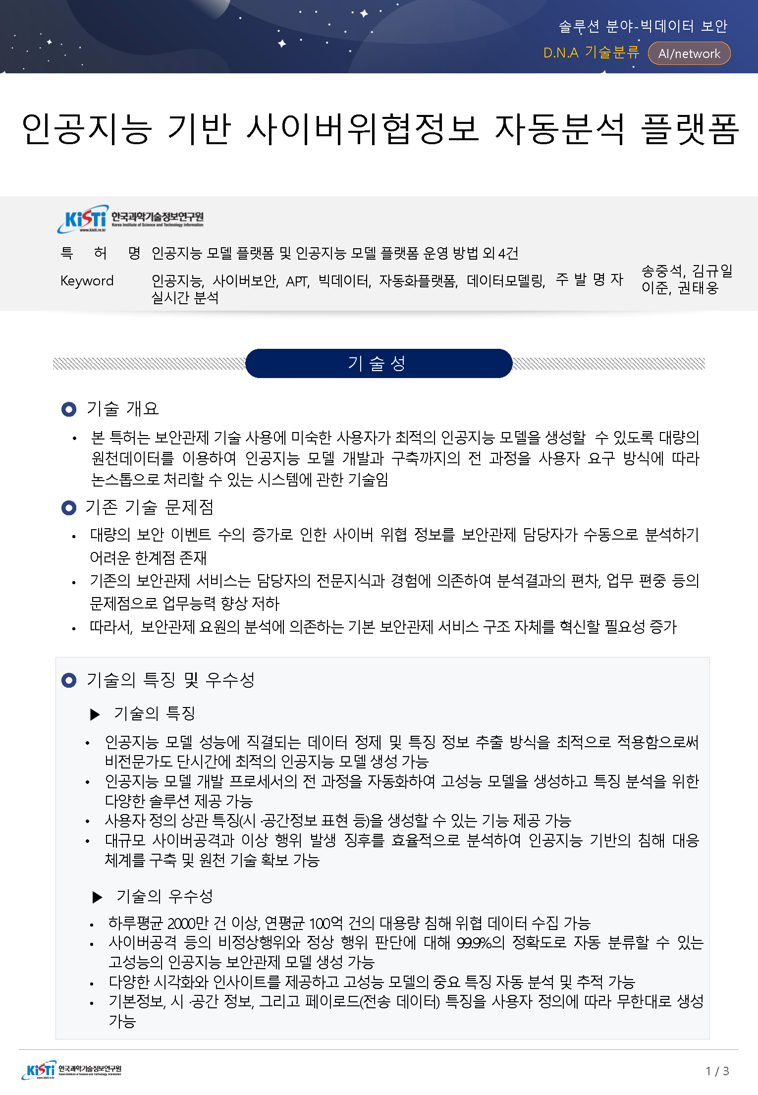인공지능 기반 사이버위협 자동분석 플랫폼(KISTI 송중석, 이준, 권태웅)