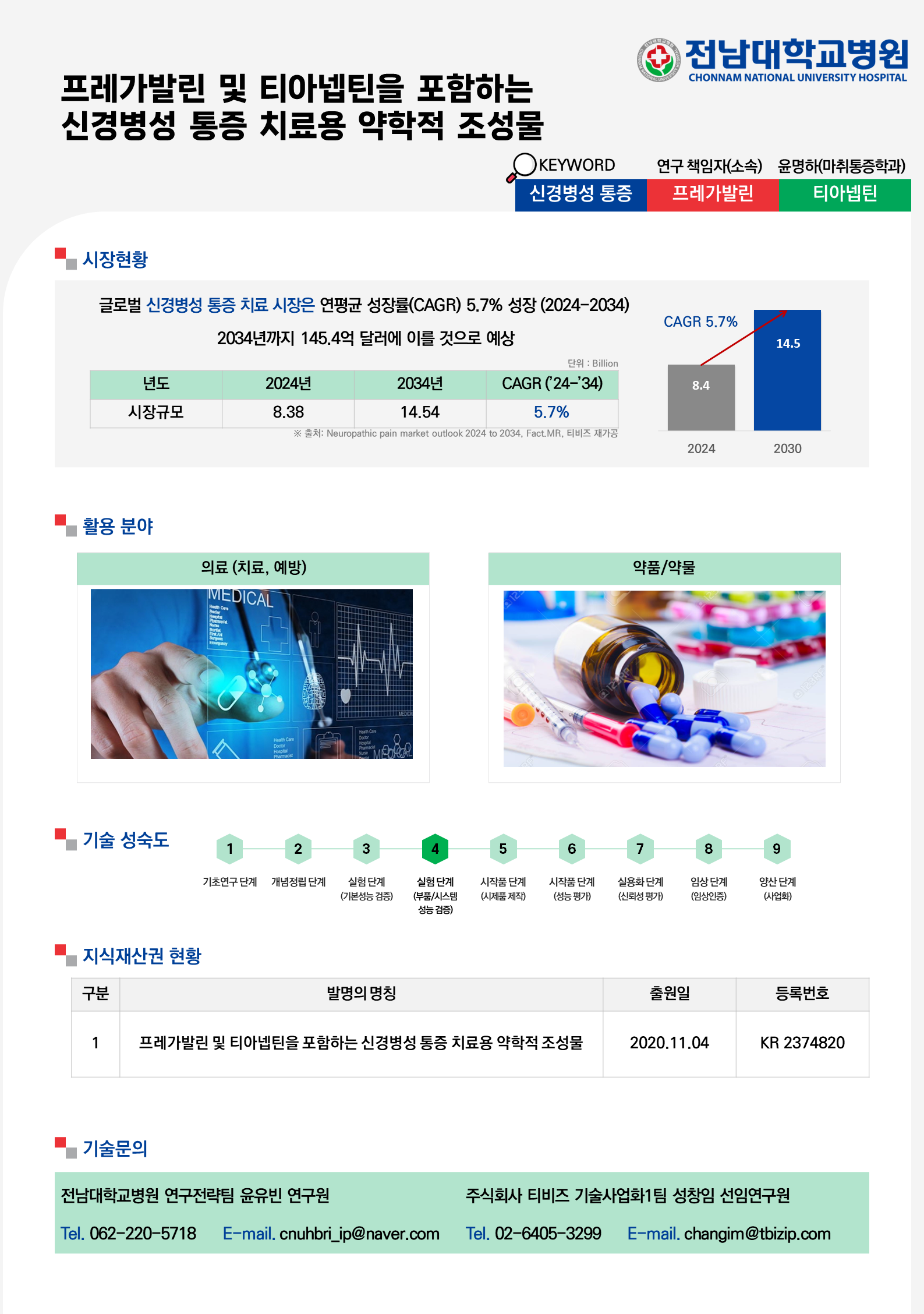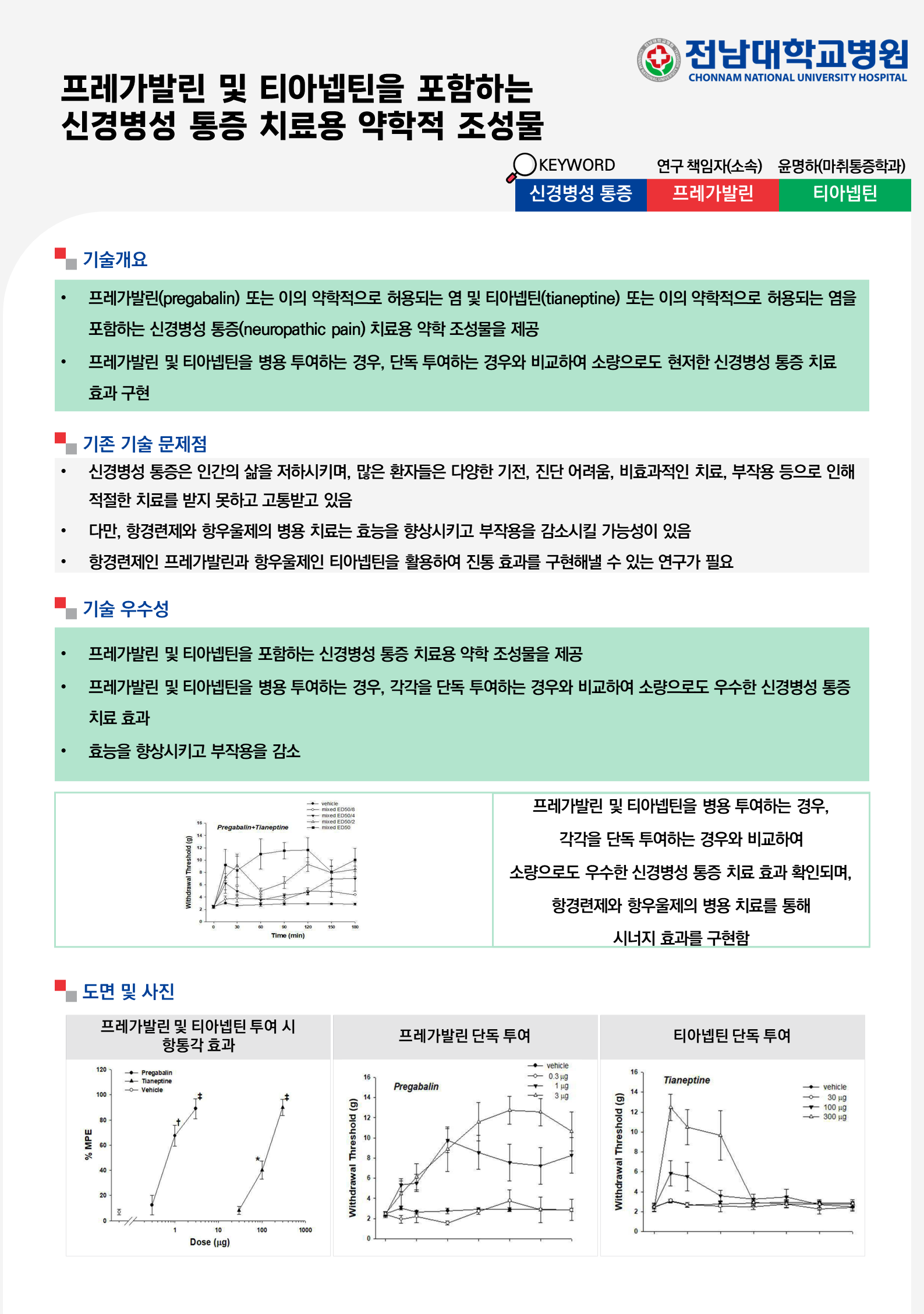 전남대학교병원-프레가발린 및 티아넵틴을 포함하는 신경병성 통증 치료용 약학적 조성물